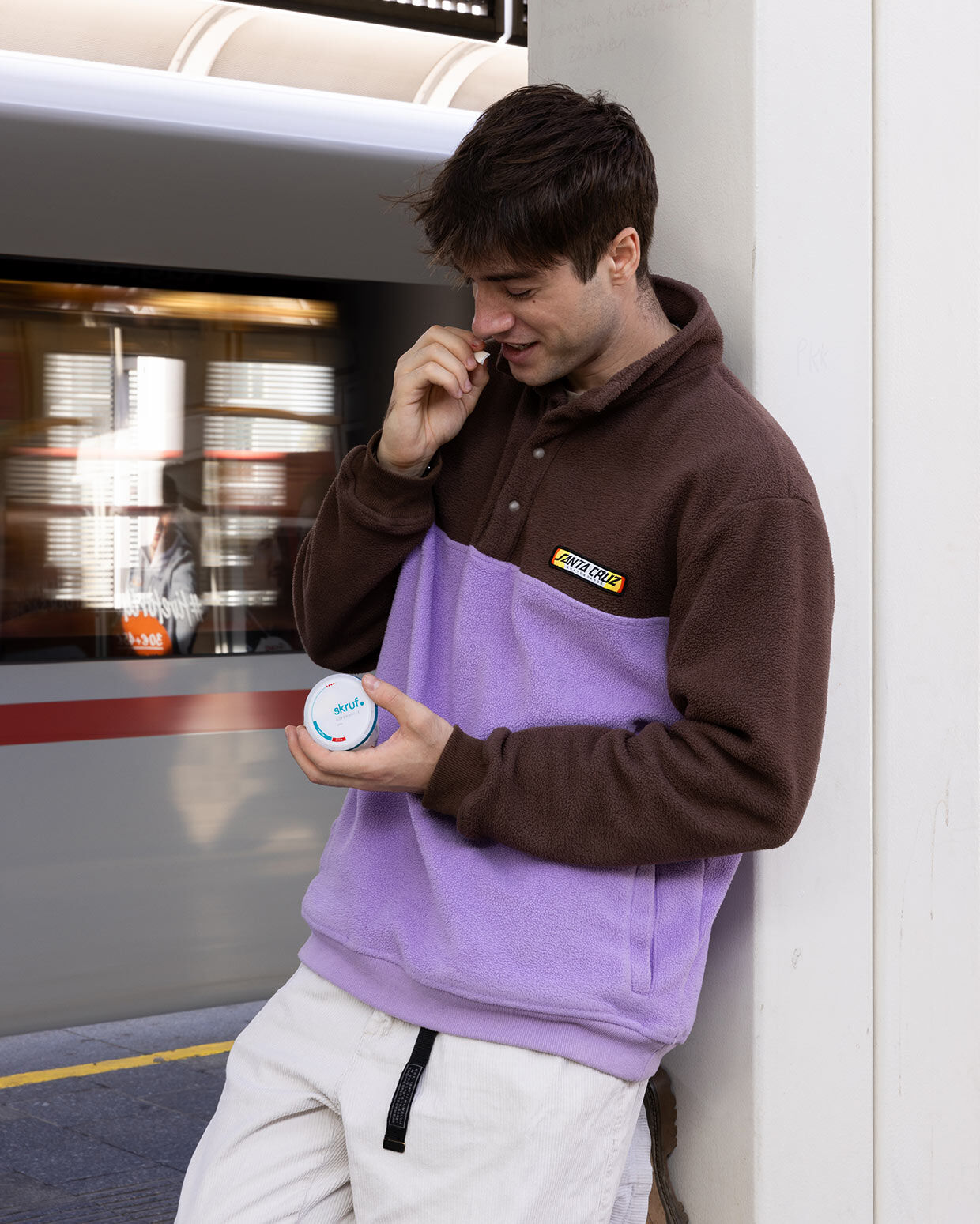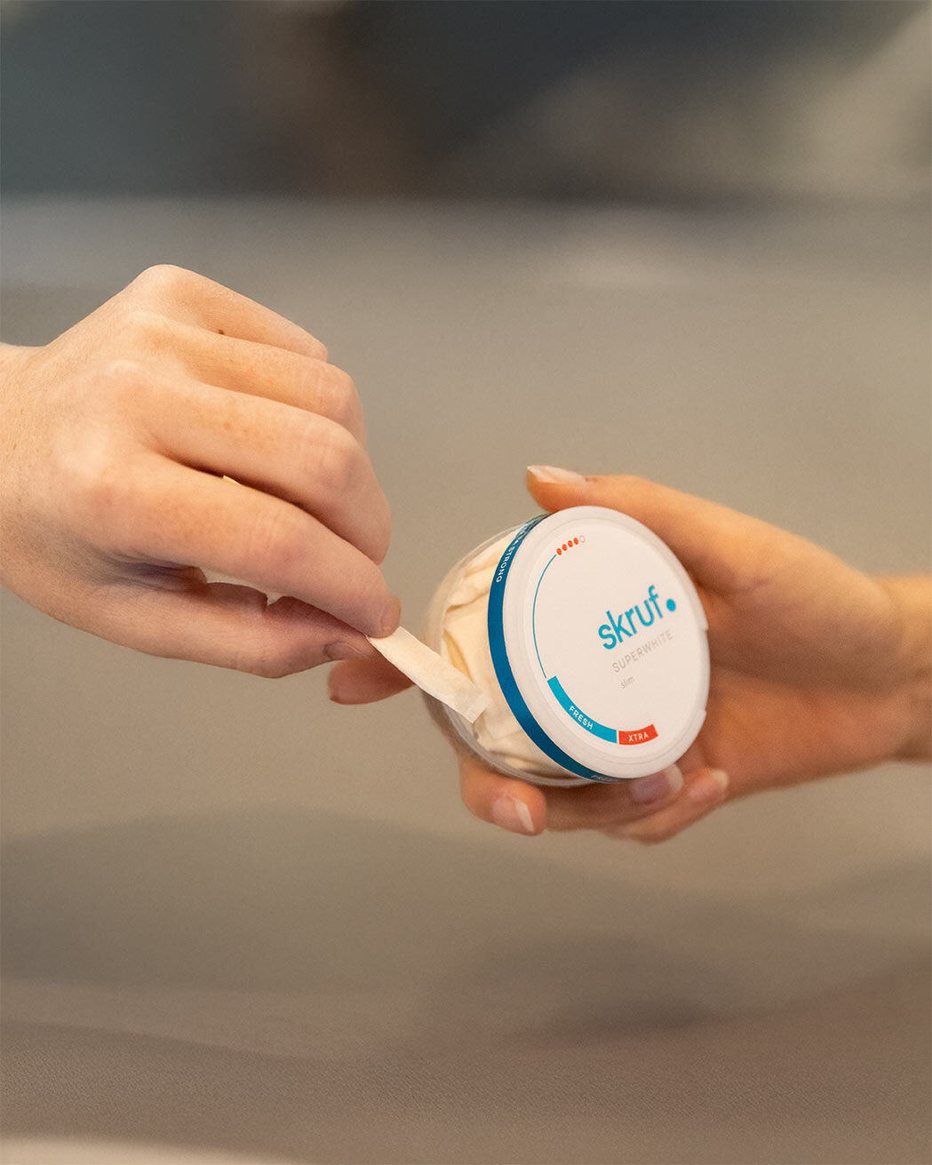skruf Dosen haben ein praktisches Fach, in dem du gebrauchte Pouches unterwegs sammeln kannst. Nie über Nacht im Mund lassen – das kann zu Reizungen führen. Nach der Nutzung einfach im Restmüll entsorgen.